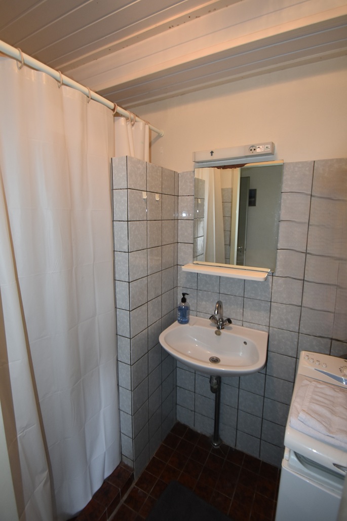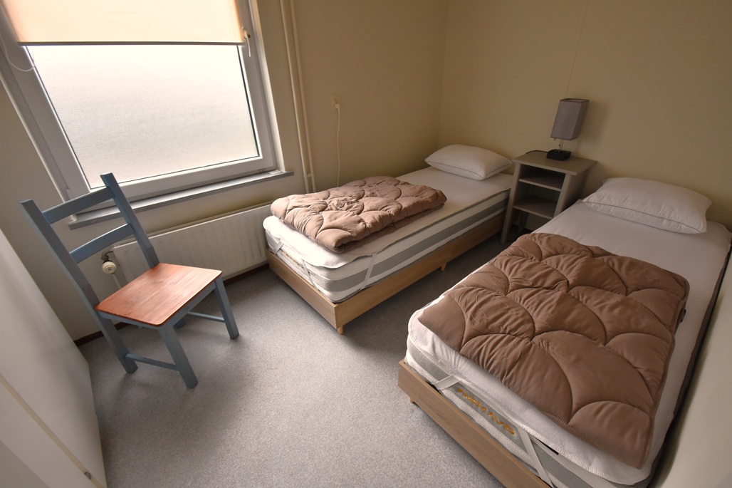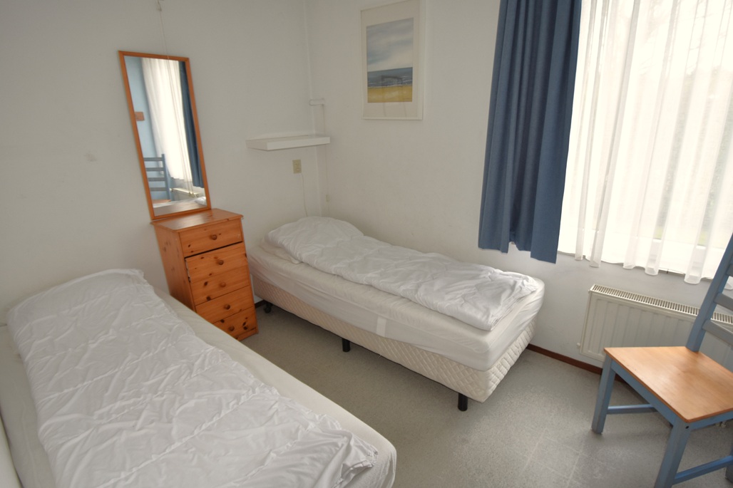 1 slaapkamer met 2 eenpersoonsbedden, badkamer met douche, wastafel en toilet
