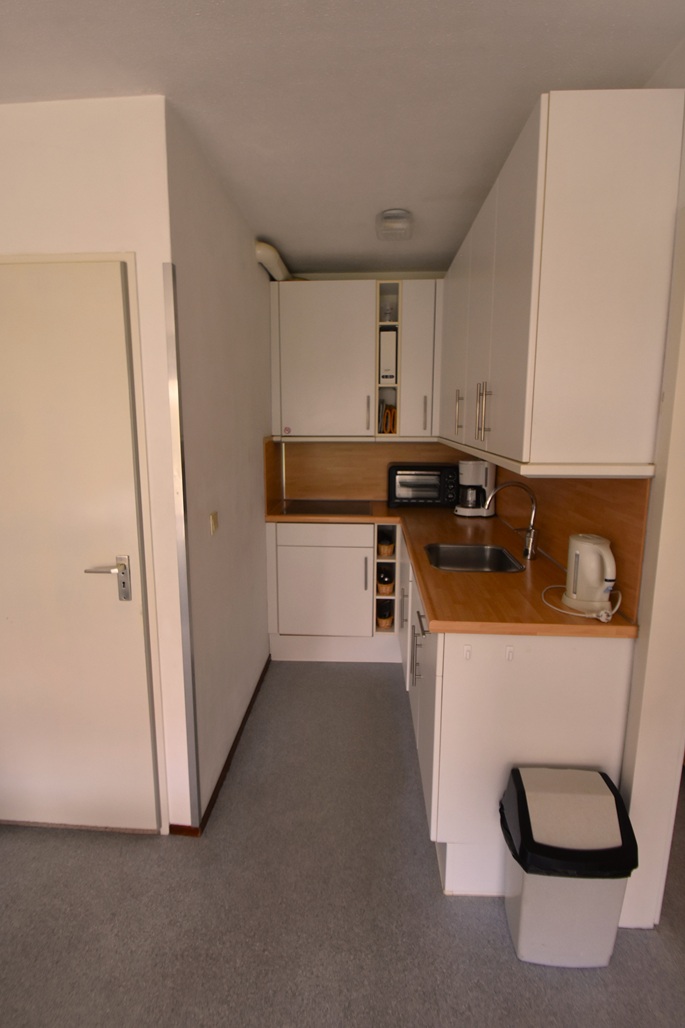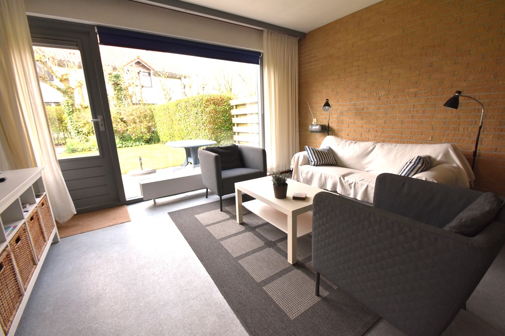 Het appartement is onderdeel van een appartementencomplex met gezamenlijke gang maar heeft een eigen ingang tot het appartement. Het appartement heeft een eigen tuin met  terras, tuinmeubelen, de tuin is gelegen op het zuiden/zuidwesten.