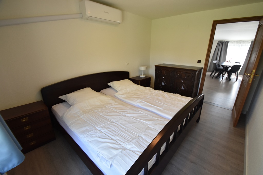 2 slaapkamers met 1 tweepersoons bed met 2 matrassen (90×200), 2 eenpersoonsbedden (90×200)